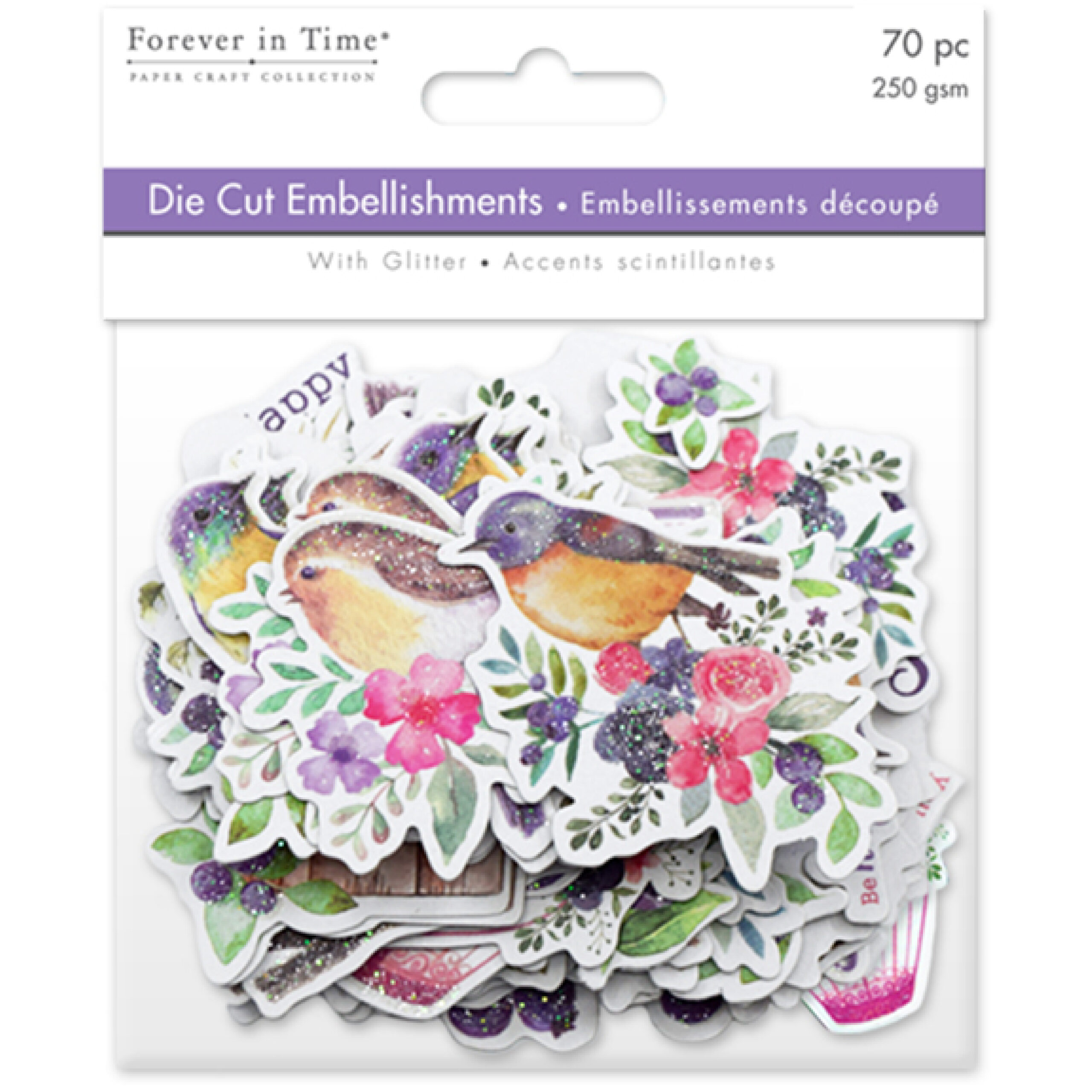 MultiCraft – Forever in Time – Glitter Die Cut Embellishments – Birds & Berries (70 Pieces)