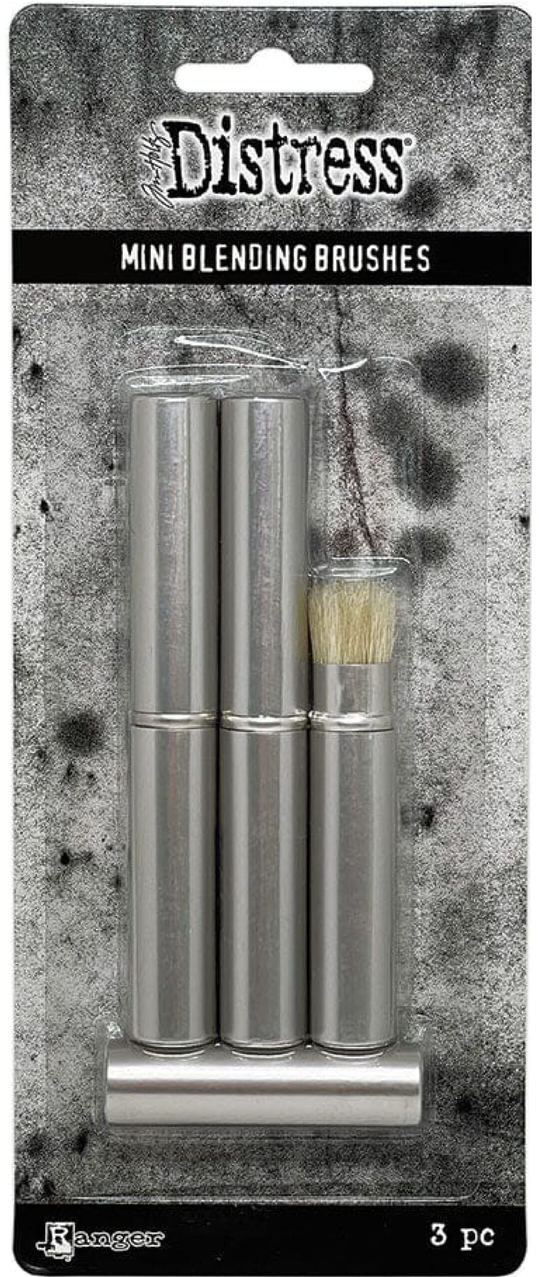 The Tim Holtz Distress® Mini Blending Brushes are firm, short bristled brushes designed to create detailed blends.  Use to easily apply Distress Ink and Oxide directly to smaller areas, or apply through stencils.  Distress Mini Blending Brushes are made with natural fibers.  The compact, retractable design is ideal for convenient storing in the Distress Mini Ink Storage Tin.  3 brushes.