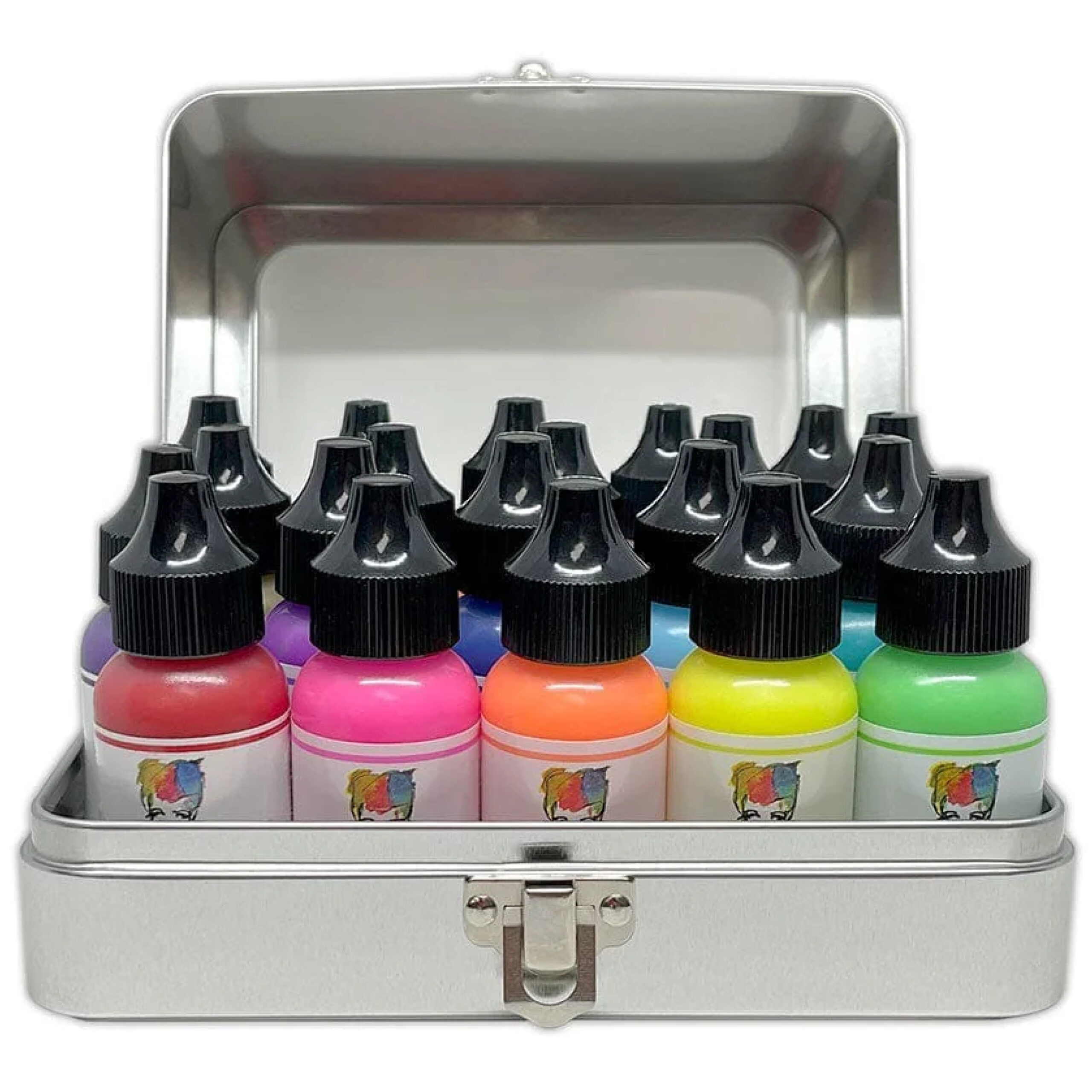Tim Holtz Distress® Multi Storage Tin is the ideal storage solution for Tim Holtz Distress Reinkers, Paints, and Mini Sprays. Organize and transport easily in this interchangeable stackable tin. Features a clear window and hinged metal closure.  Divided, interchangeable inserts make it easy to organize and access individual bottles. Interchangeable inserts hold up to 24 Distress Reinkers, 20 Distress Paints, 20 Distress Mini Sprays. (Contents sold separately)