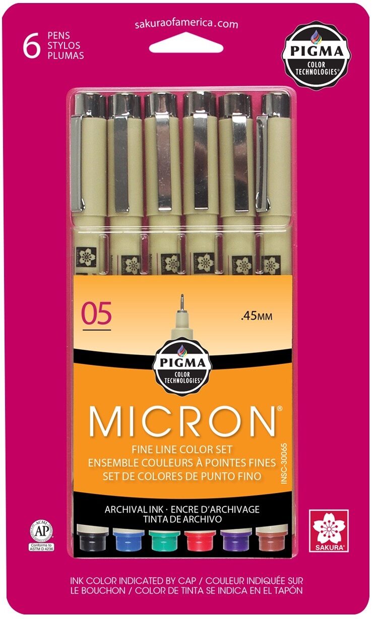 Manga artists, professional illustrators and watercolorists use the six point sizes to create precision lines. Scrapbook enthusiasts and crafters require its archival quality for preserving memories in journals, and for making cards, quilts and dolls. Use Pigma Micron to leave a mark that will last a lifetime.